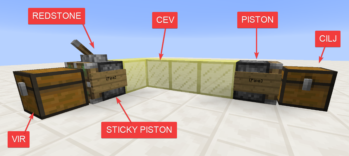 Postavitev je lahko poljubna dokler imate sticky piston z redstone signalom za jemanje predmetov in navaden piston za "izmet" predmetov ter seveda oba med seboj povezana z steklom. Kakšne kocke stekla uporabite je odvisno od vas, lahko imate več cevi različnih barv postavljene eno zraven druge. Dolžina ter smeri cevi sta prav tako poljubni saj lahko predmete prenašajo kamorkoli (gor, dol, diagonalno ...)